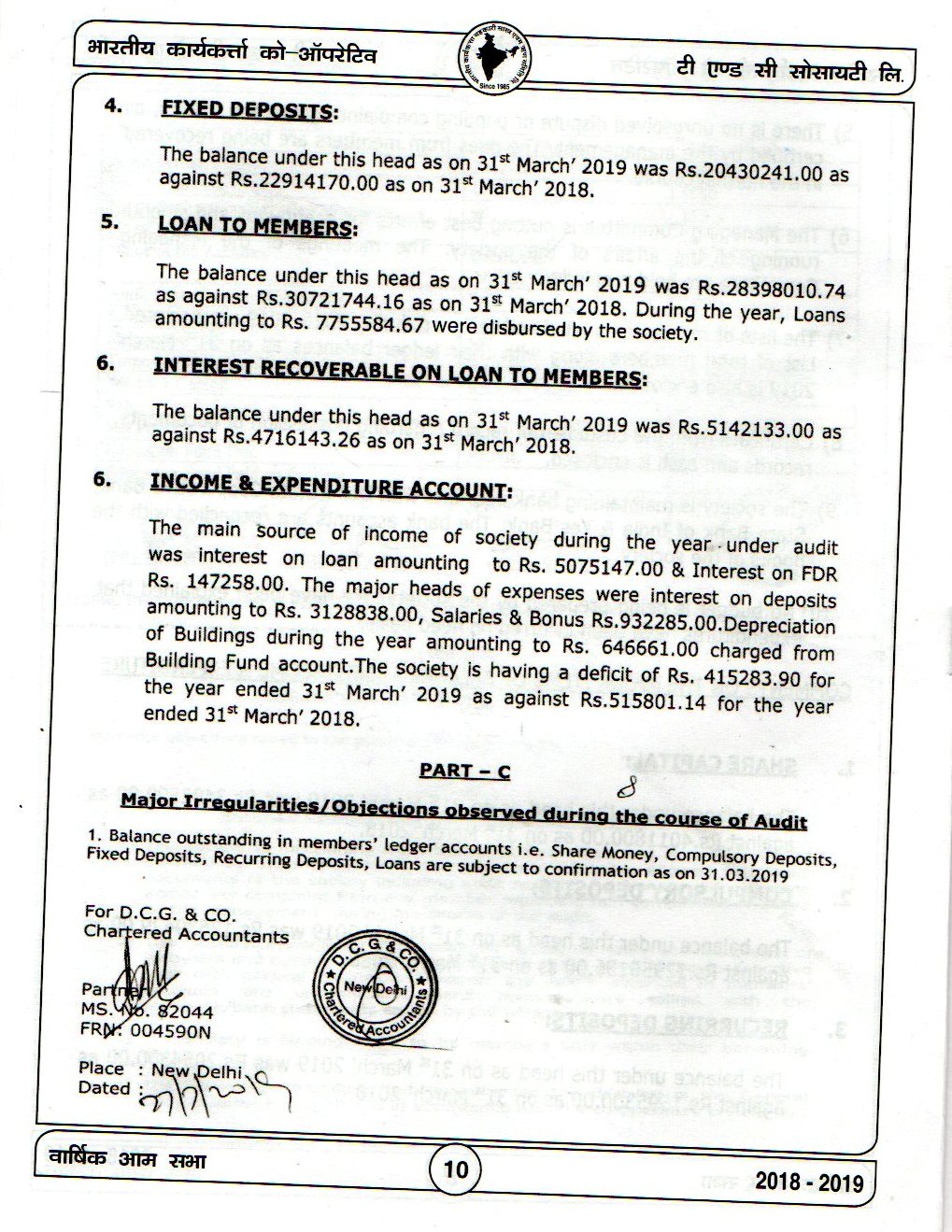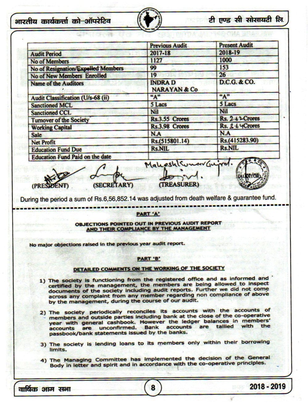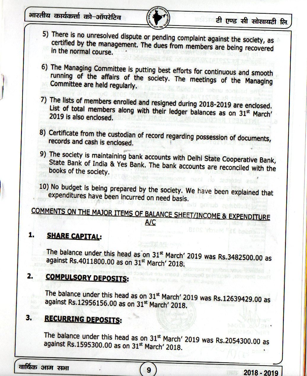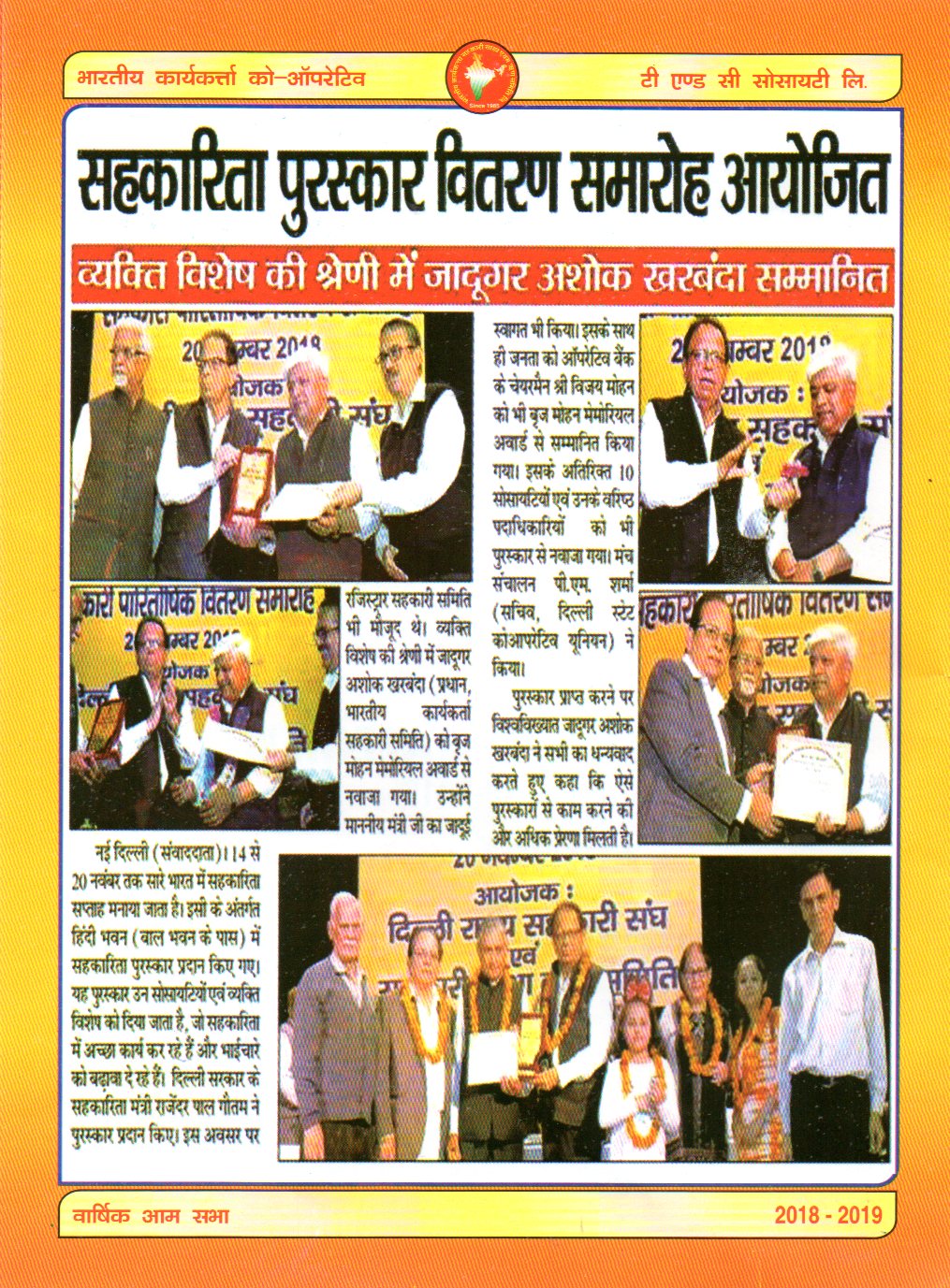 The AGM Of Bhartiya Karya Karta Co-OP T/C Society Ltd held on 22.09.2019 at Kirti Nagar Sports Complex Opposite HDFC Bank Kirti Nagar.